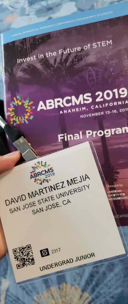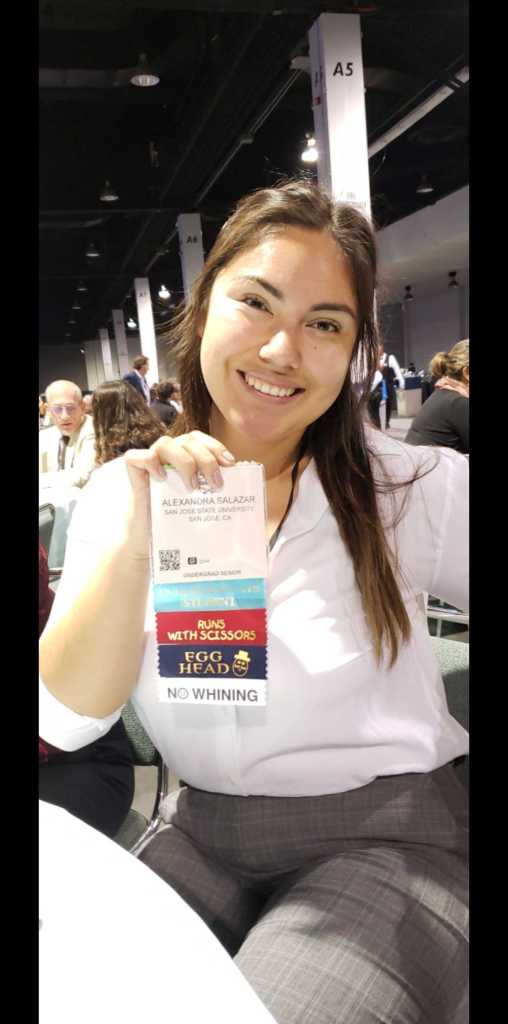 Notably, for the 2019 ABRCMS, our very own Alexandra Salazar was able to present an oral presentation showcasing her most recent work in our laboratory. We are proud to have showcased our labs findings through Alexandra’s excellent work. (Left)